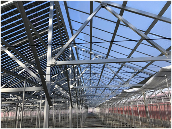 光伏农业大棚是光伏应用的一种新的模式,是集太阳能 光伏发电、智能温控系统、现代高科技种植为一体的温室大 棚,大棚采用钢制骨架,上覆盖太阳能光伏组件,同时保证 太阳能光伏发电和整个温室大棚农作物的采光需求。